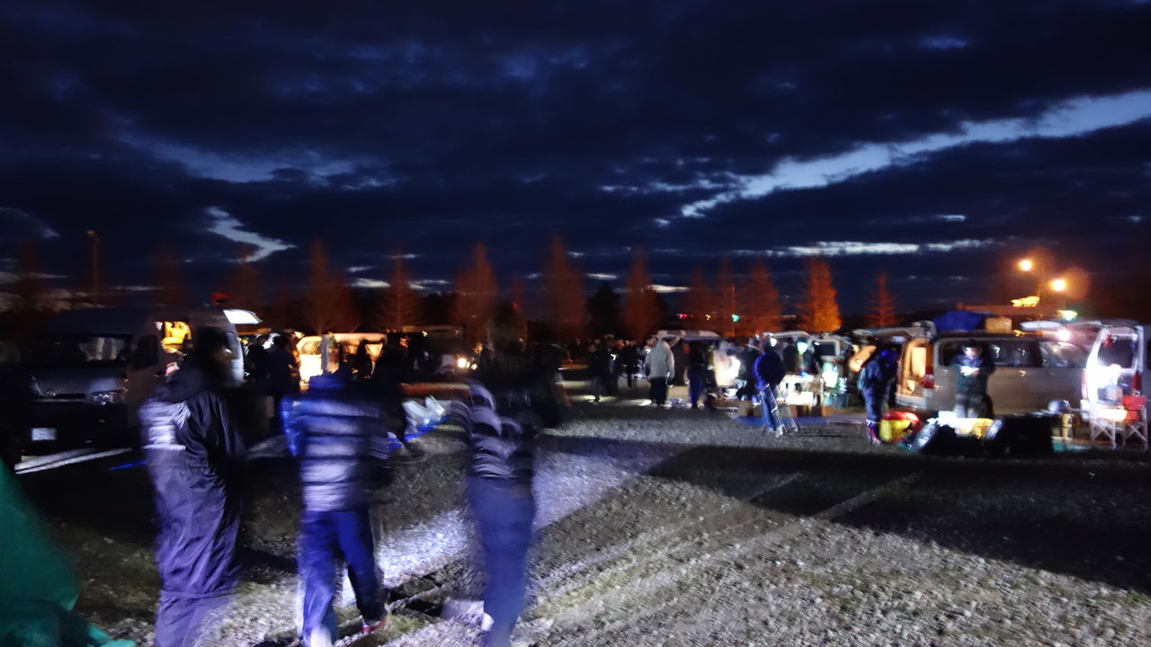 パーツの盗難等もやられる事があるのであまり暗いうちからは出店は控えたいですね