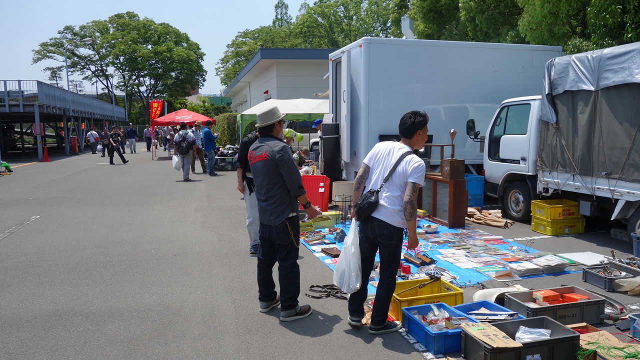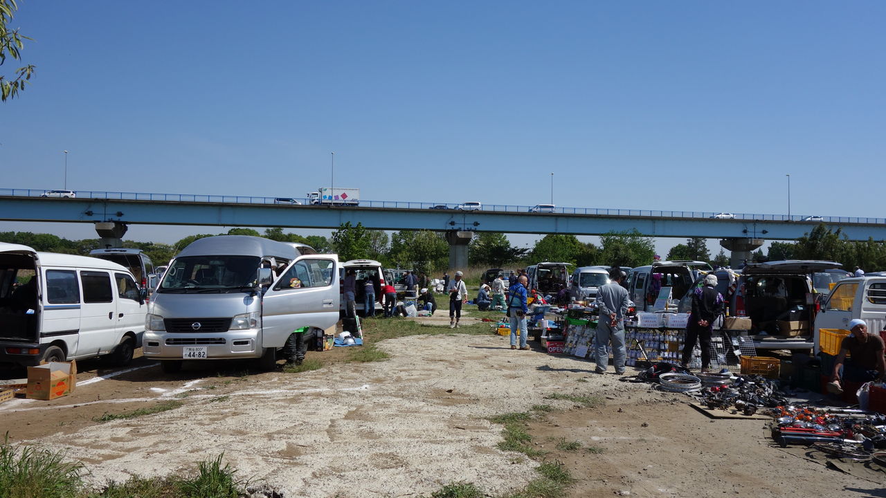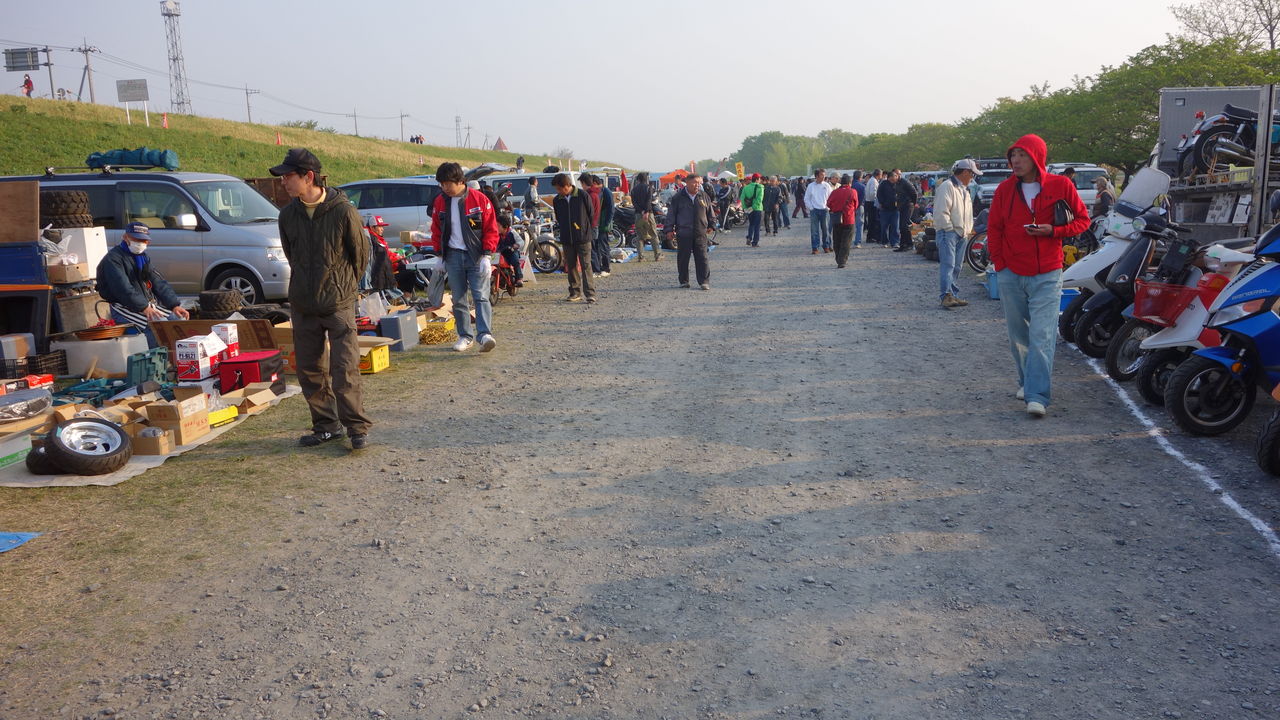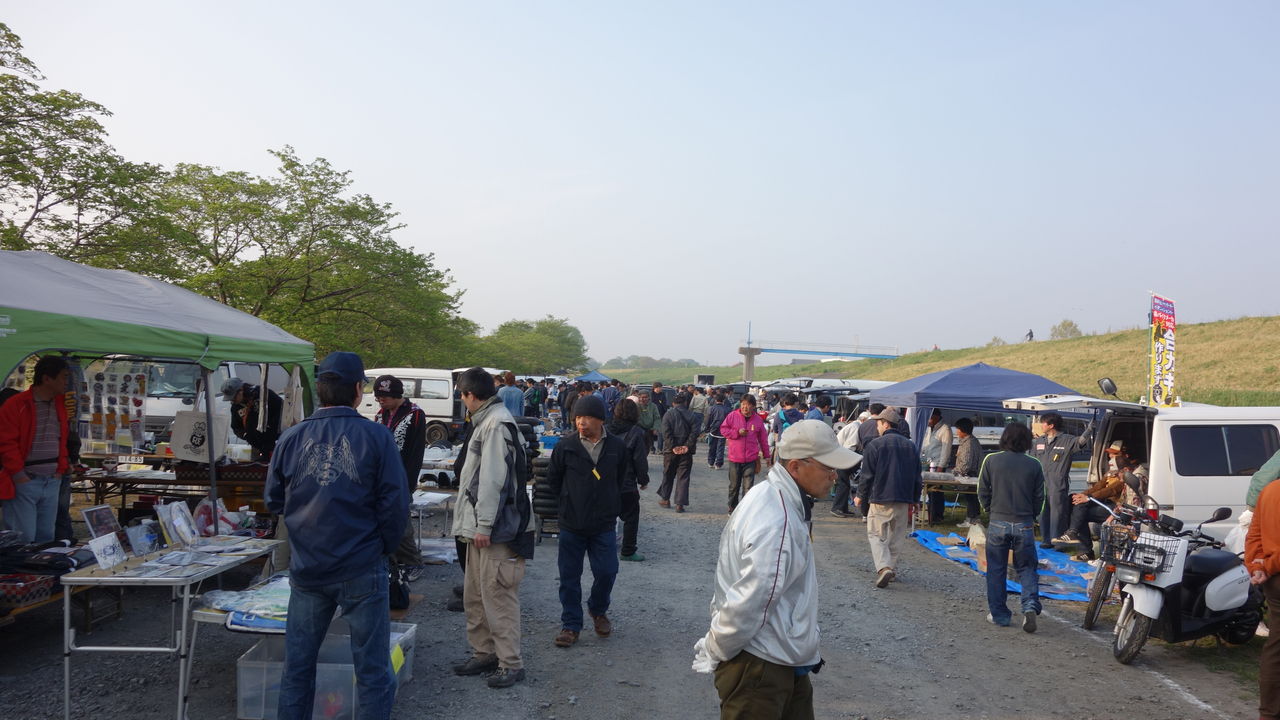 2014年05月03日 2014/4/27 北関東部品交換会 4月27日北関東部品交換会に出店で参加してきました。こちらへは初参加で時間が読めませんでしたがちょっと早めに到着するようにしました会場に到着した時はもうすでに始まっており土手沿いの奥に長い会場はもうたくさんの人と出店で賑わっていました。出店場所はちょうど真ん中辺でした。私が持って行ったお宝?ガラクタ?もよく売れてよかったです栃木まで来るとさすがに大磯や御殿場で見かけない出店者さんもたくさん居り楽しめました次回も参加したいと思います